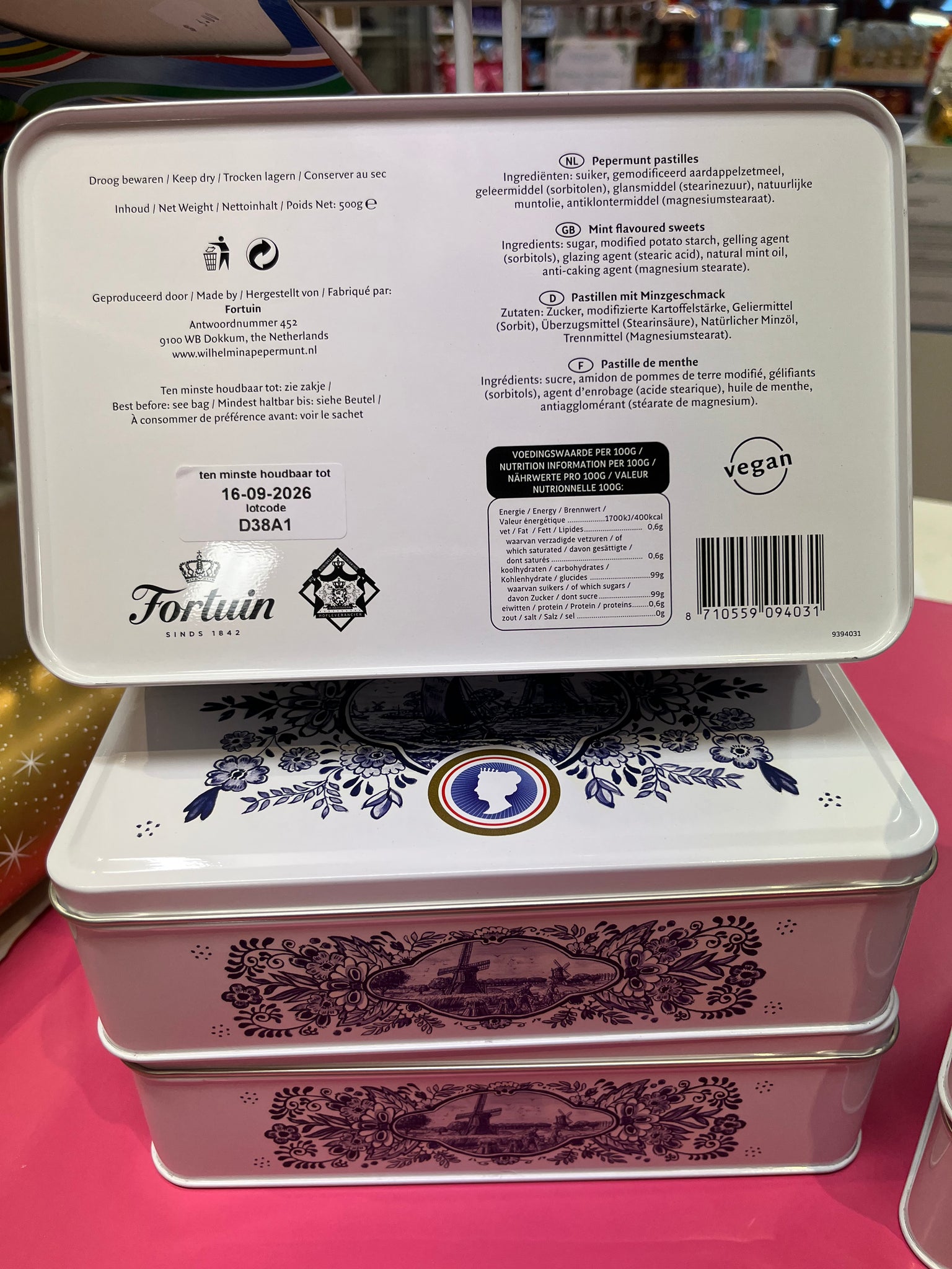 Dutch Wilhelmina Pepermunt 500g delft blue collectible tin