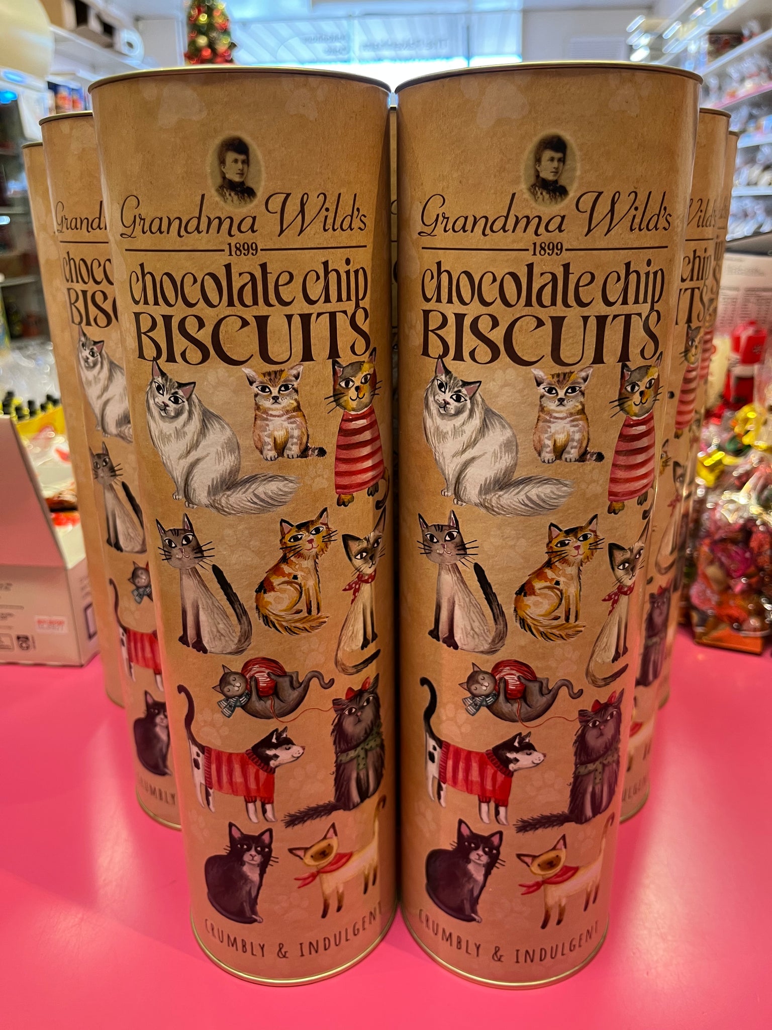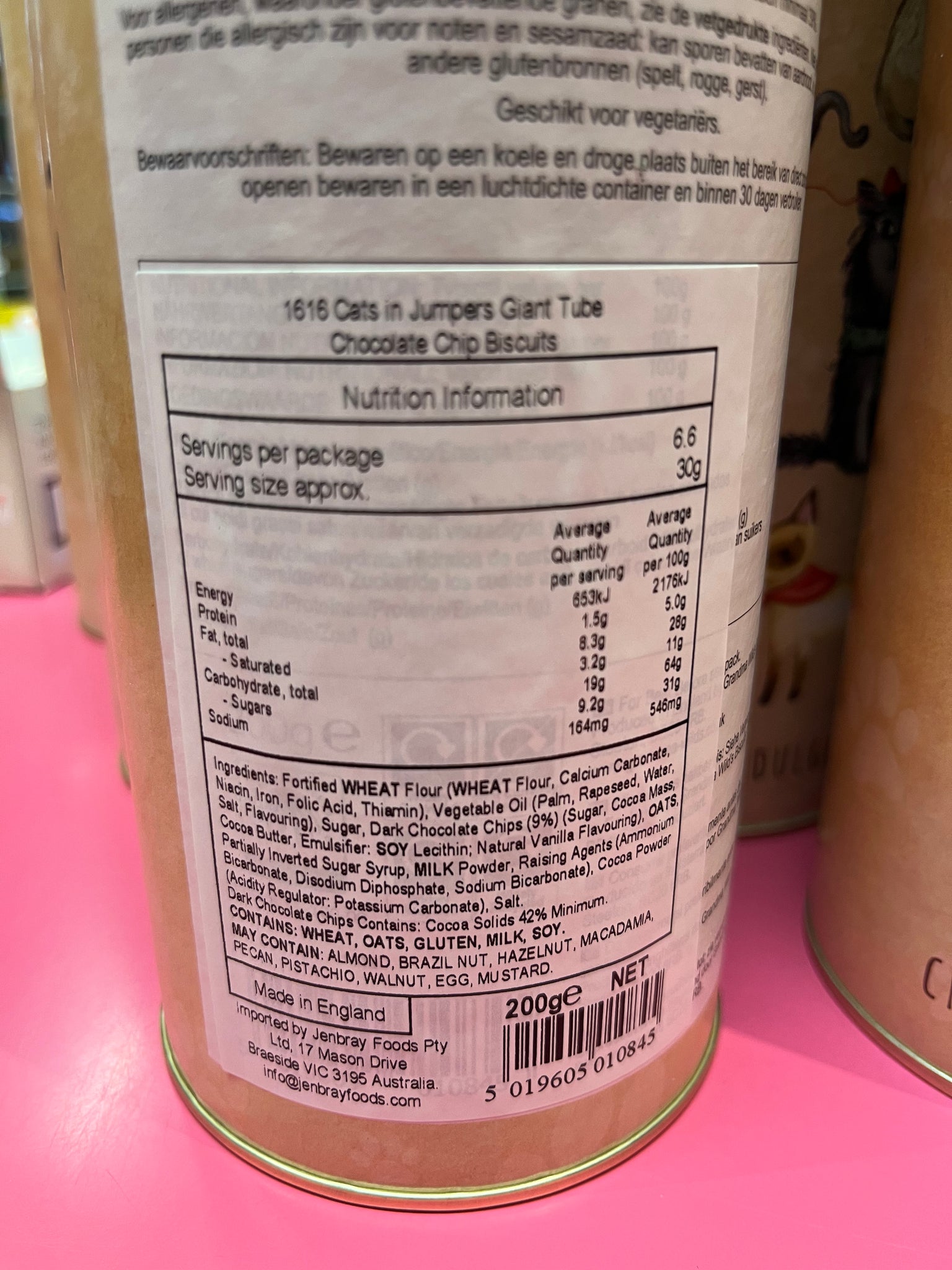 Not an all tin product but still a collectible container of cats in jumpers in a giant tube