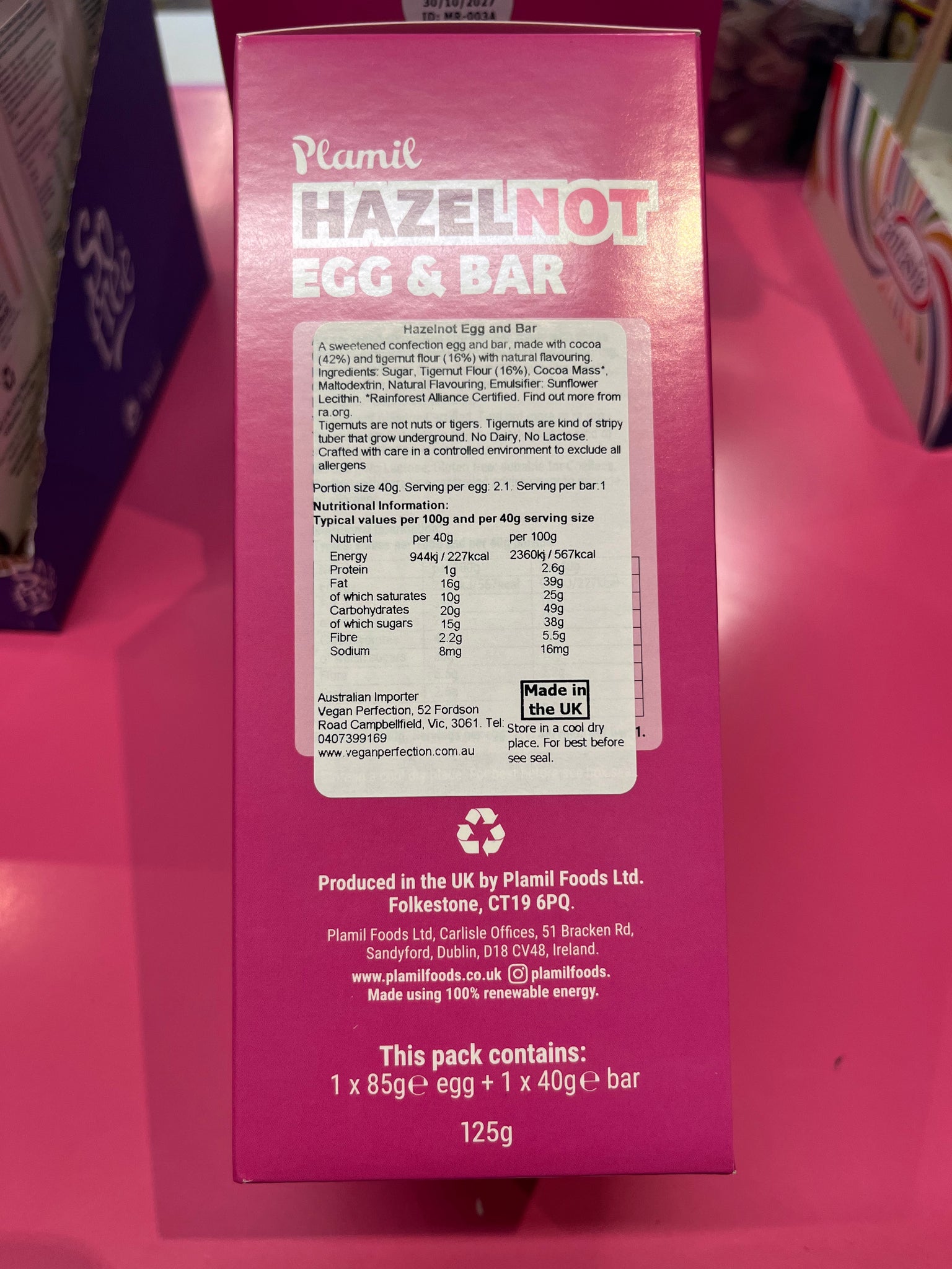 Plamil HazelNOT made with Tigernuts which are “not nuts or tigers” 😂 egg and bar. Vegan and gluten free.